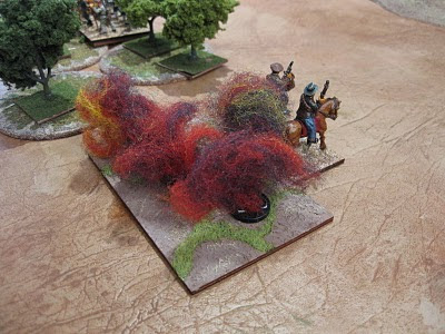 A roll of a six brings in the Red artillery. This is a "God" in HoTT terms. I put the artillery piece on the base line, the element is the point of fire.