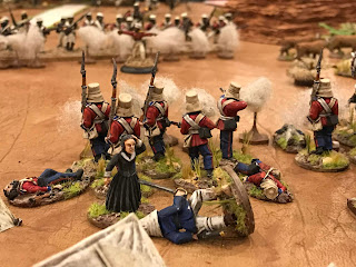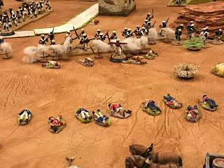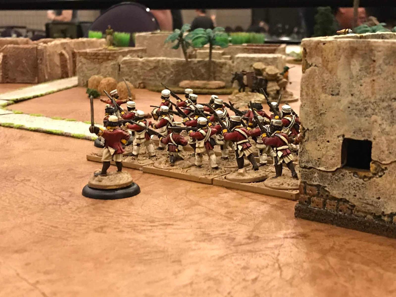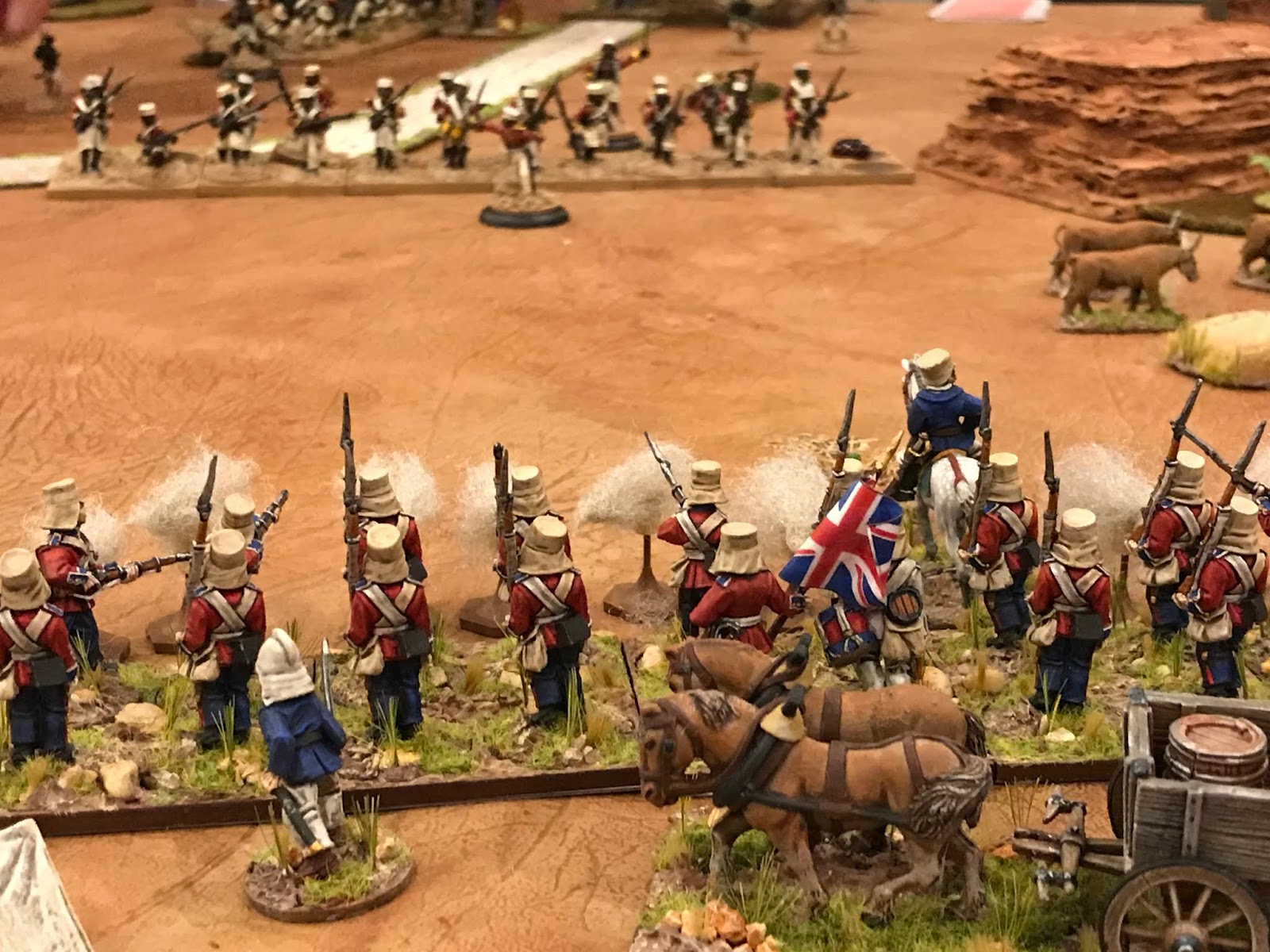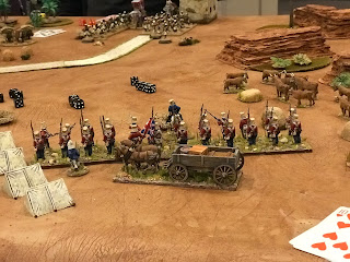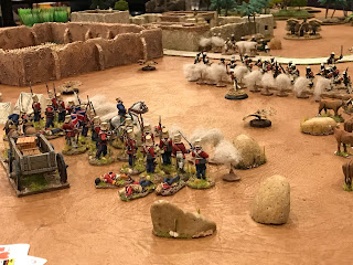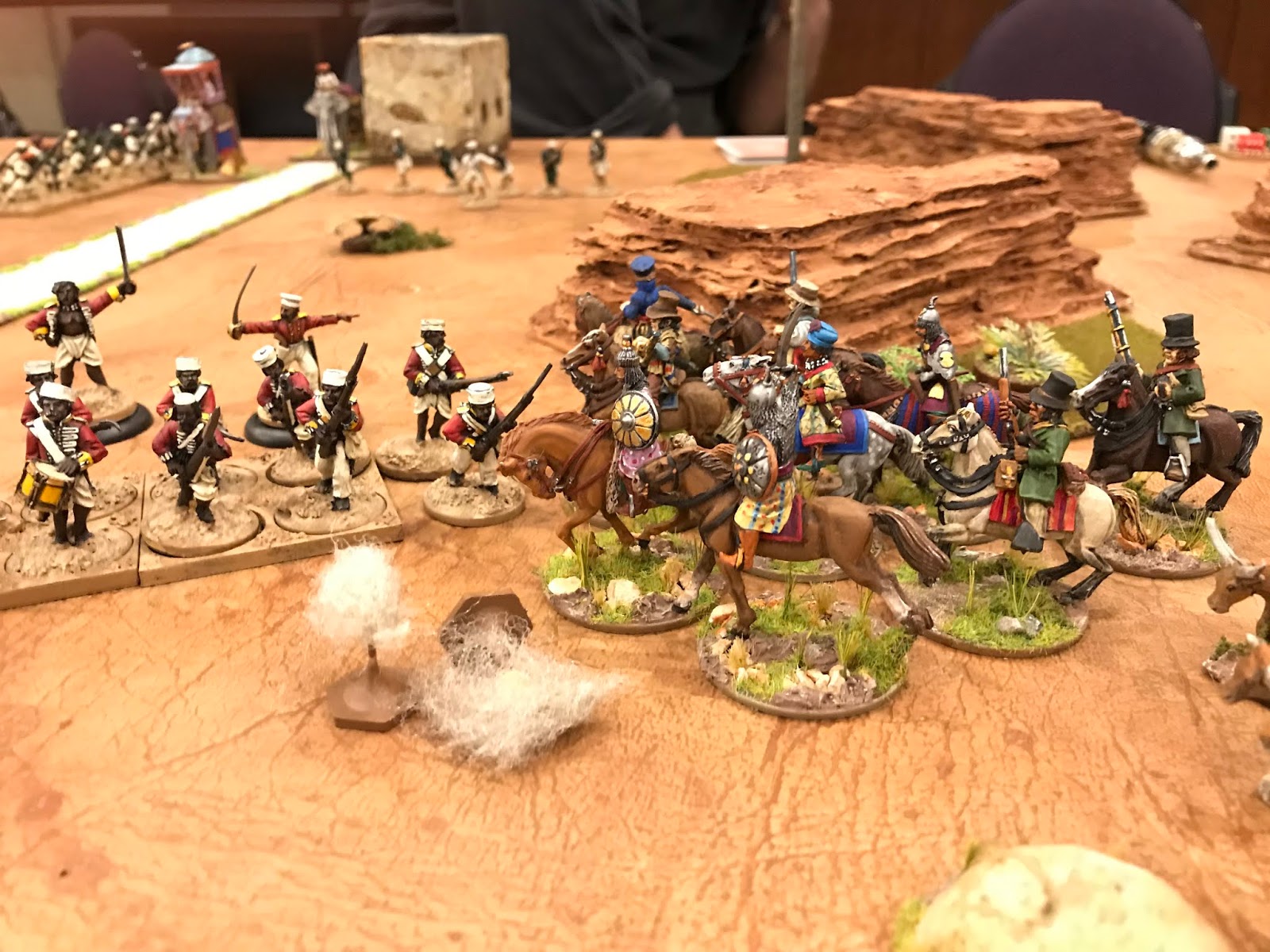 Both the forces of Major Charles Wutherington Inbred-Smyth of the 19th regiment, and the rebels under their leader Ram Ditin deployed from the centre of the table. This suited Inbred-Smyth, who could dominate the open terrain with British Enfield rifles, and came as a shock to Ram Ditin who had hoped to skulk amongst the rocks or the jungle.